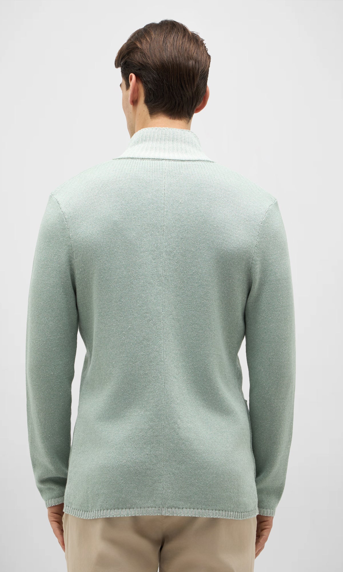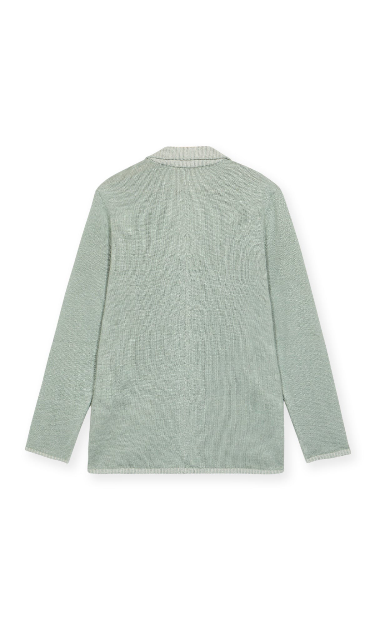 Realizzato con una lavorazione vanisè che combina due filati differenti, il capo acquista una profondità cromatica ricca e un aspetto più tridimensionale.