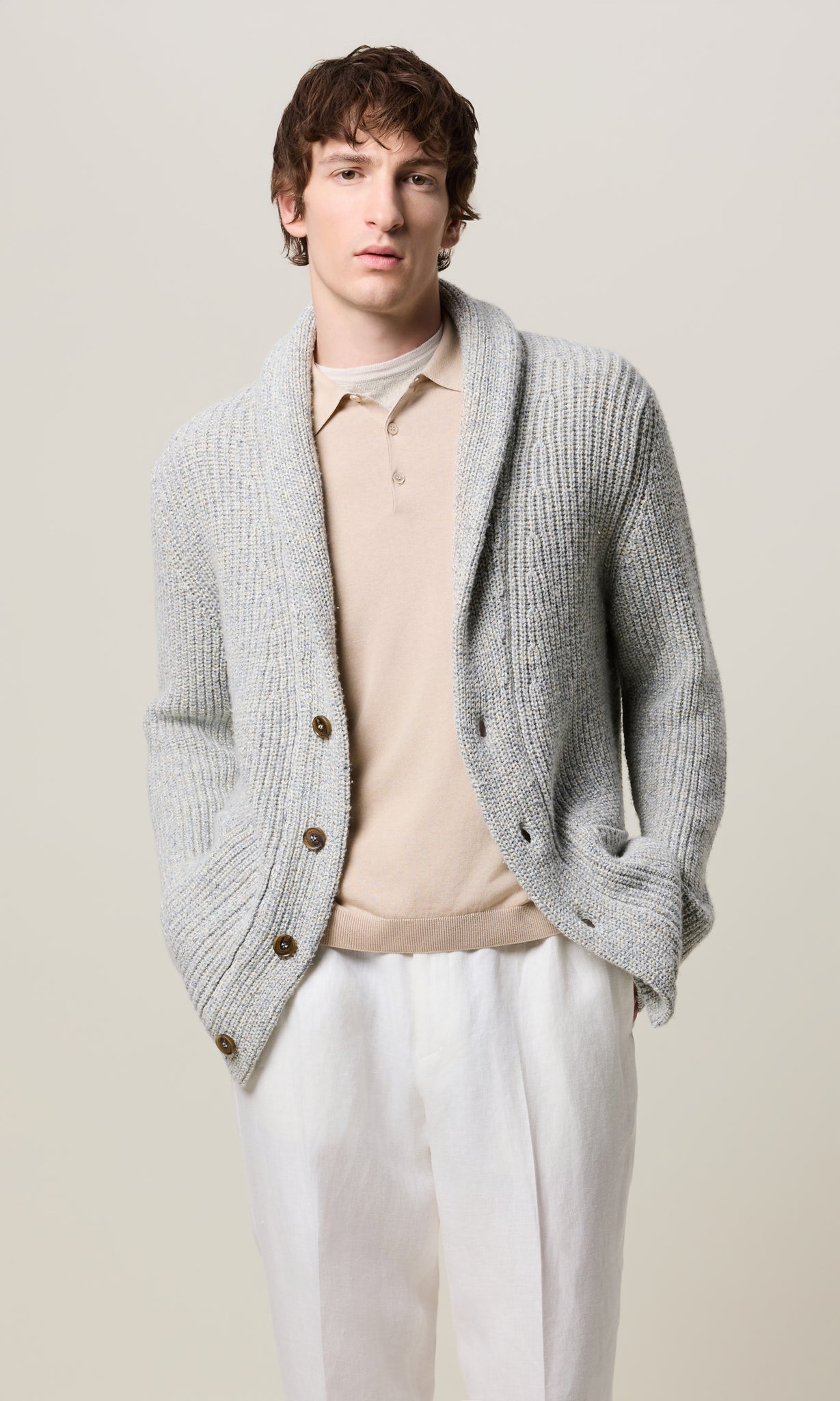Cardigan In Lino e Cashmere