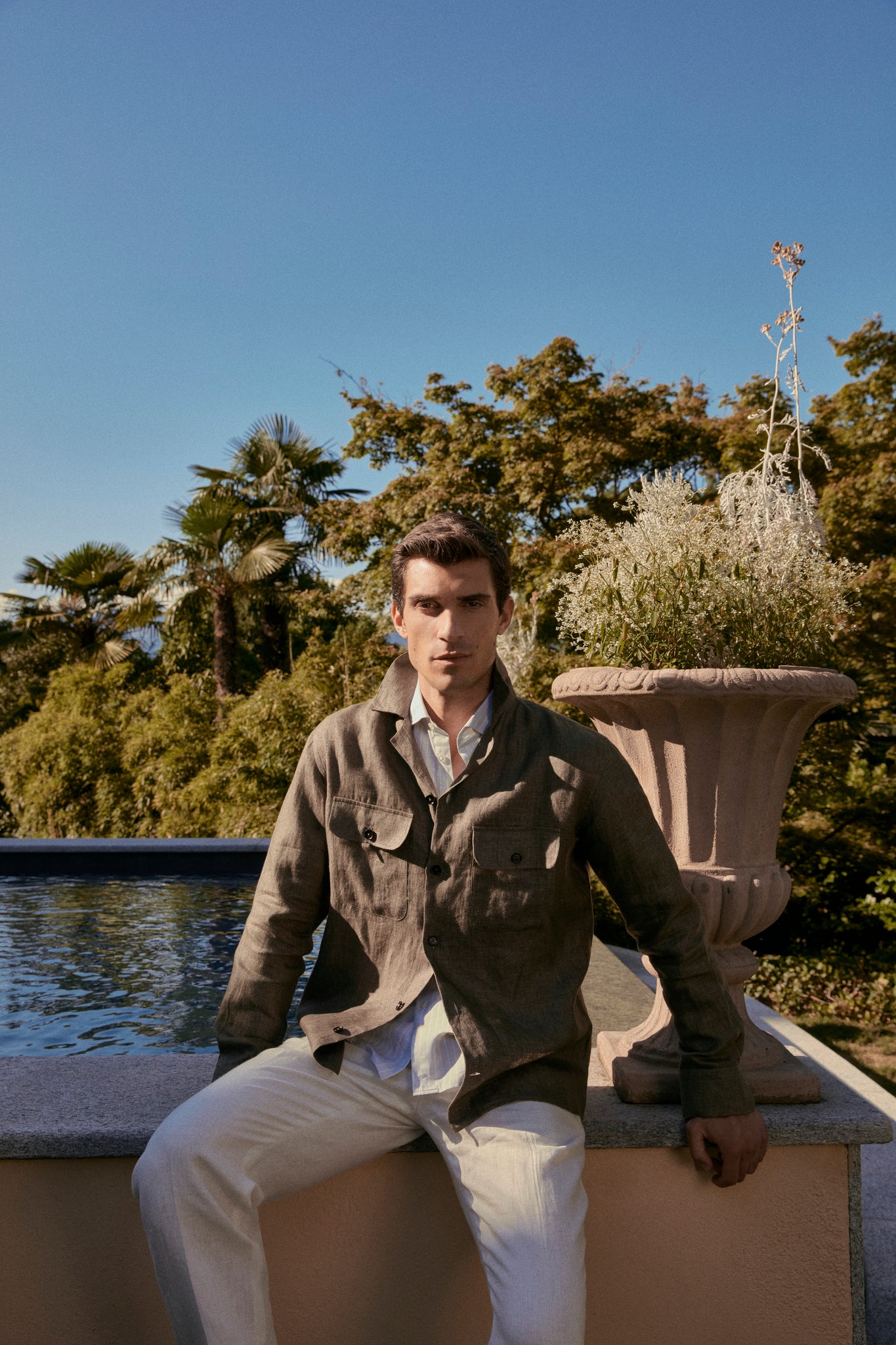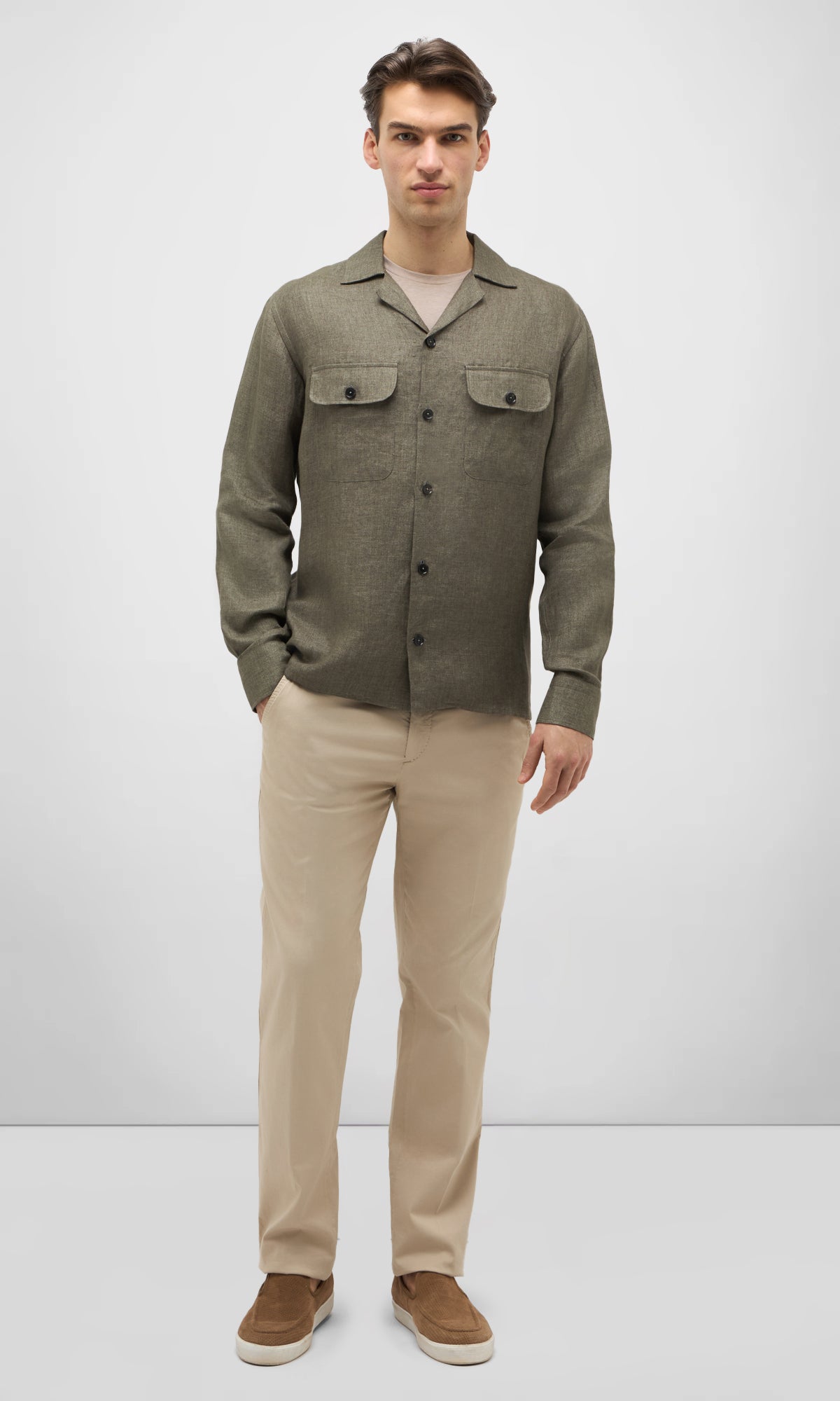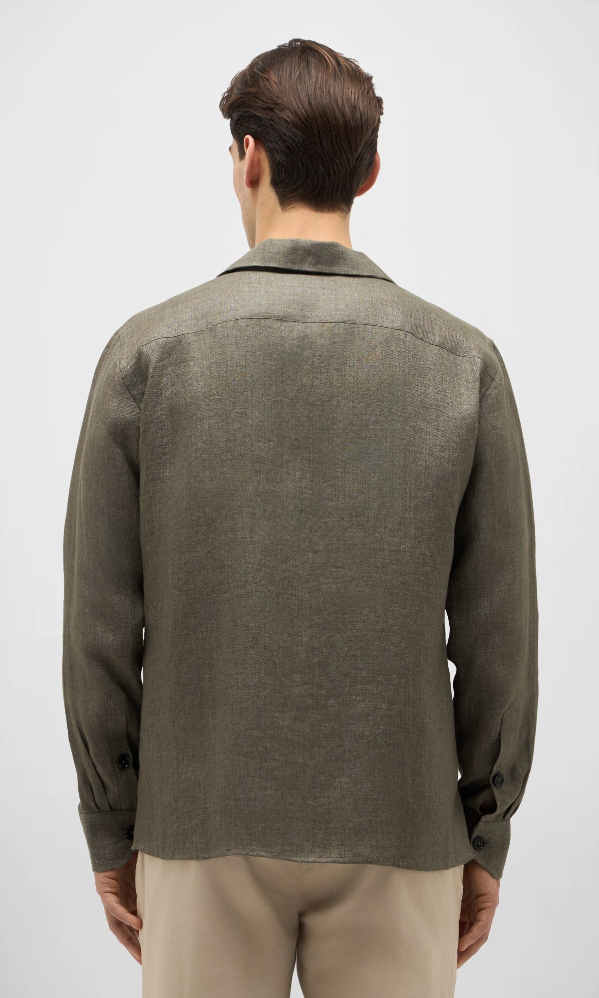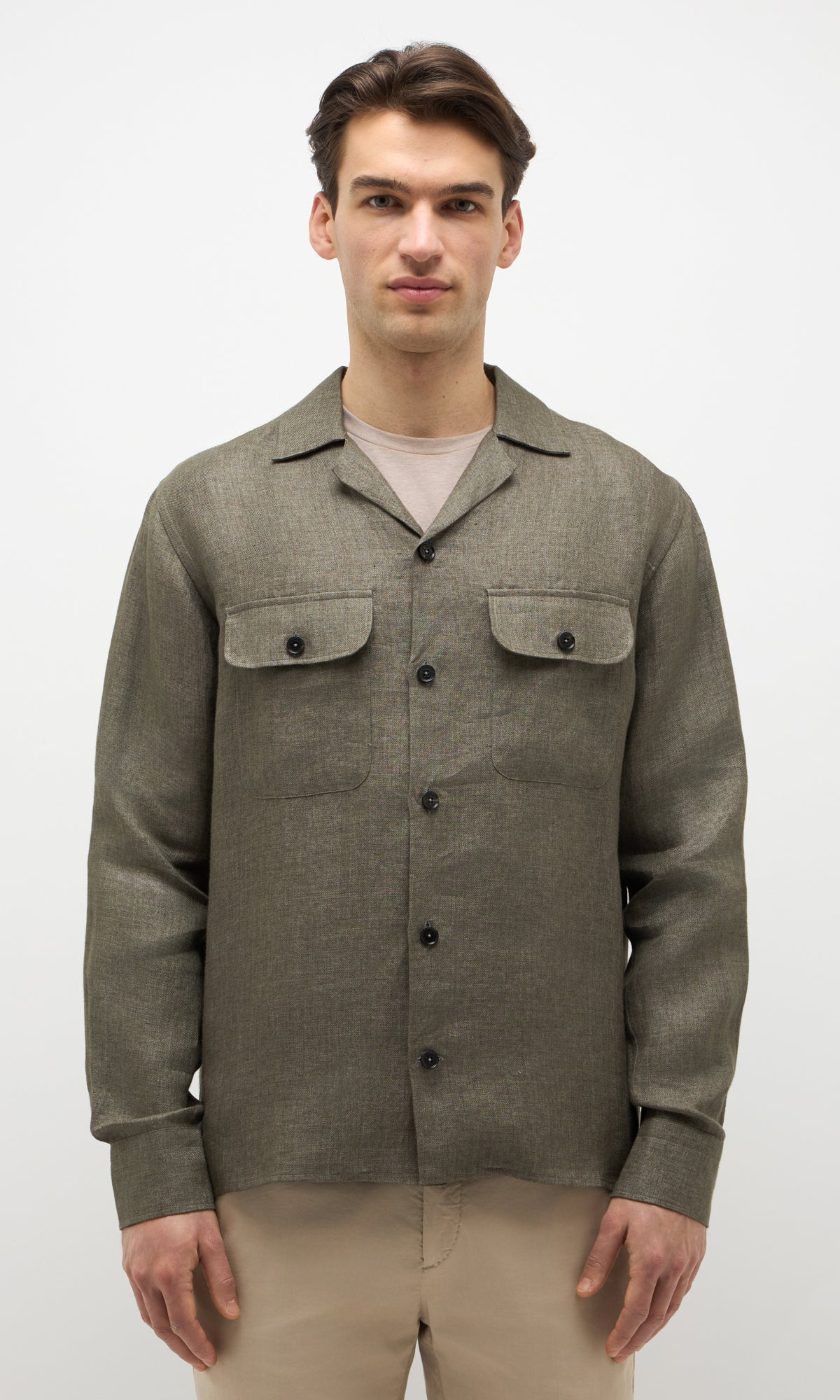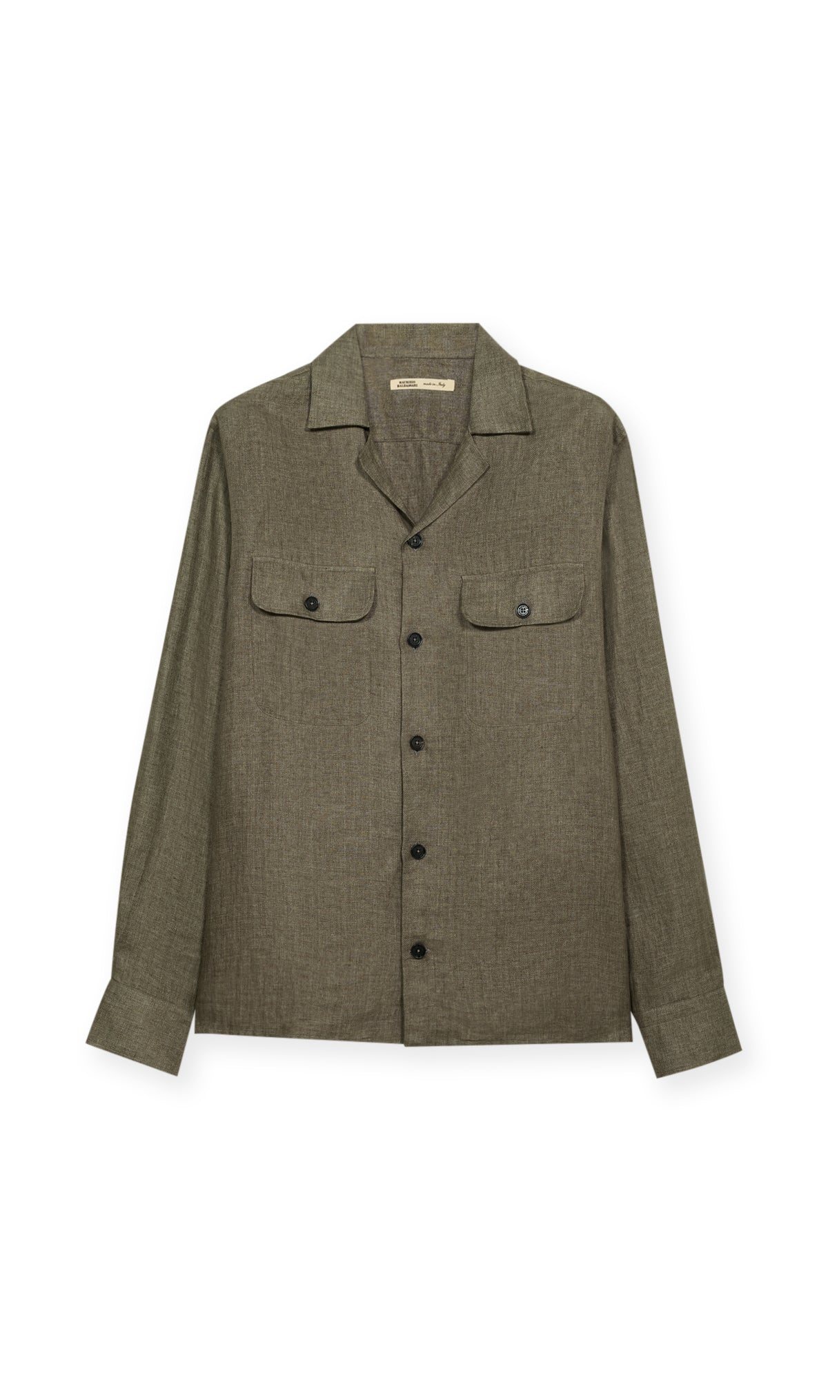 Camicia bowling a manica lunga realizzata in lino italiano di alta qualità, leggera e naturalmente traspirante.