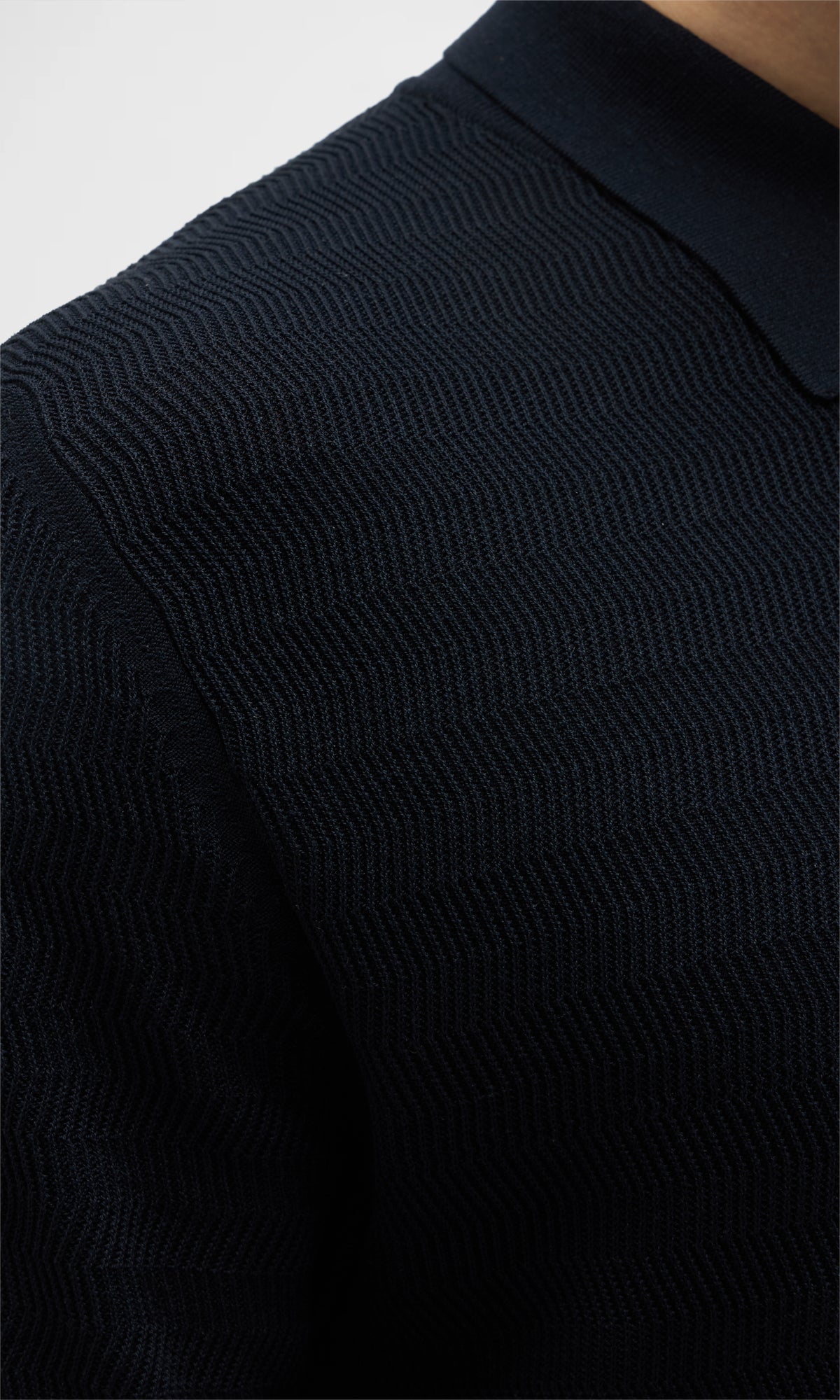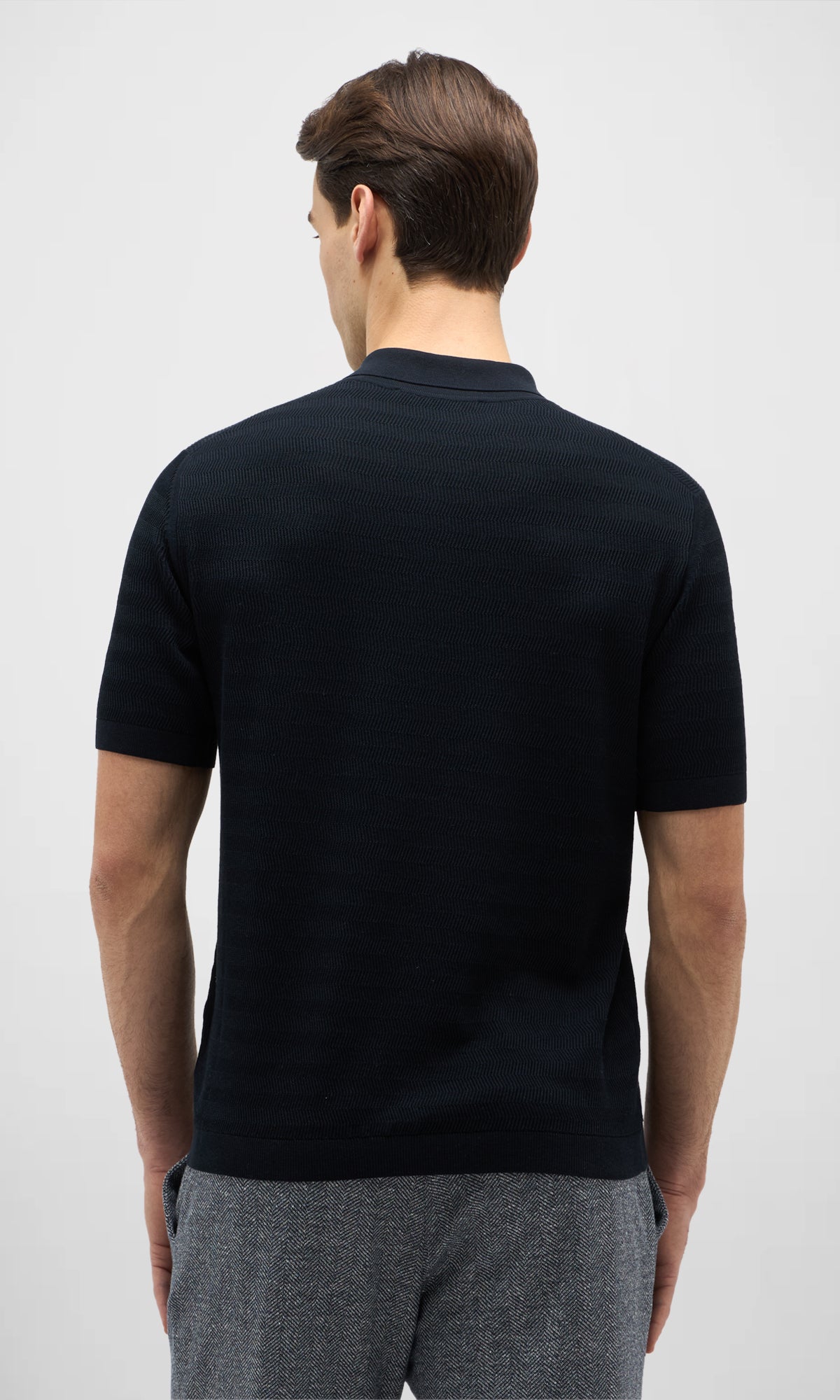 Polo realizzata in un filato lussuoso di seta e cotone con delicata struttura a zig-zag.