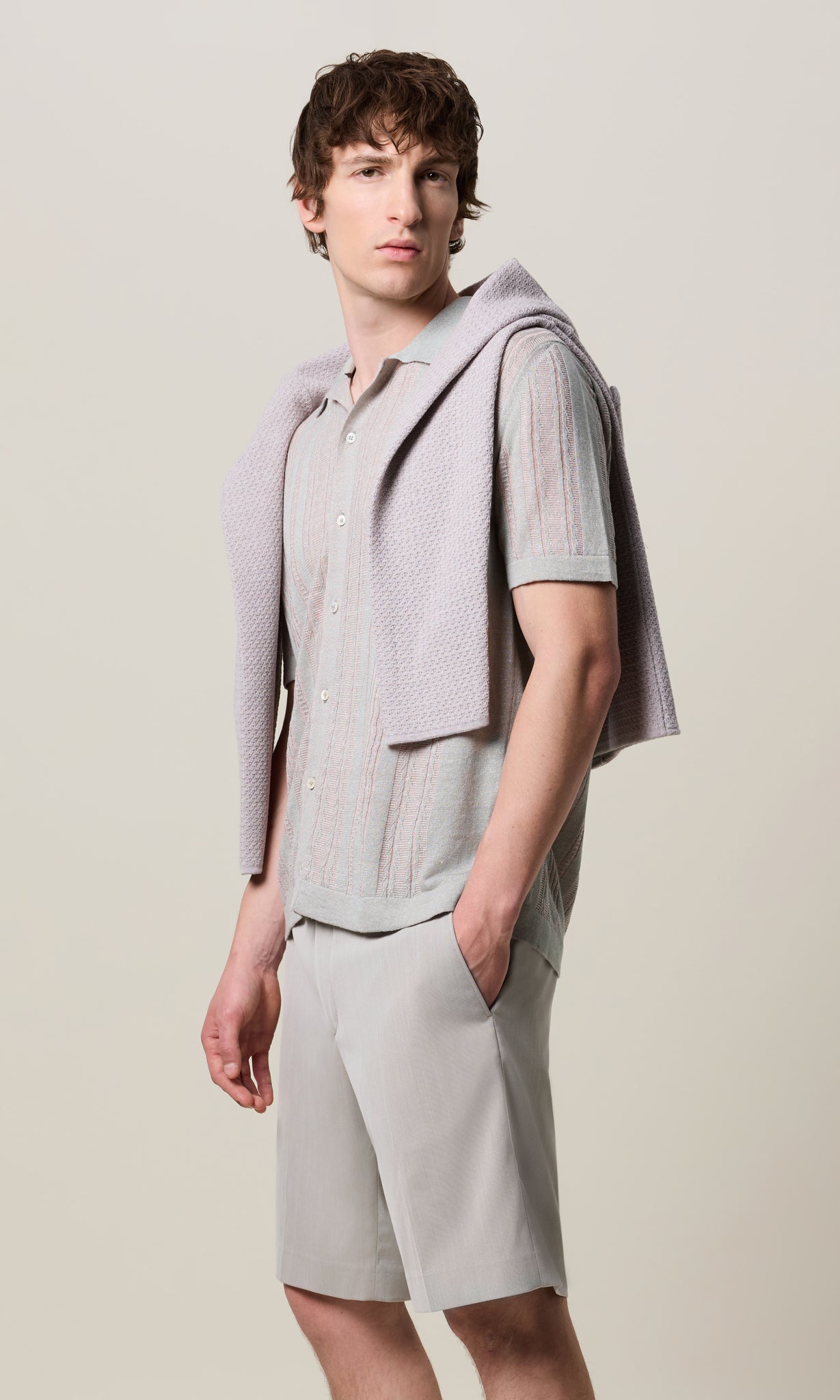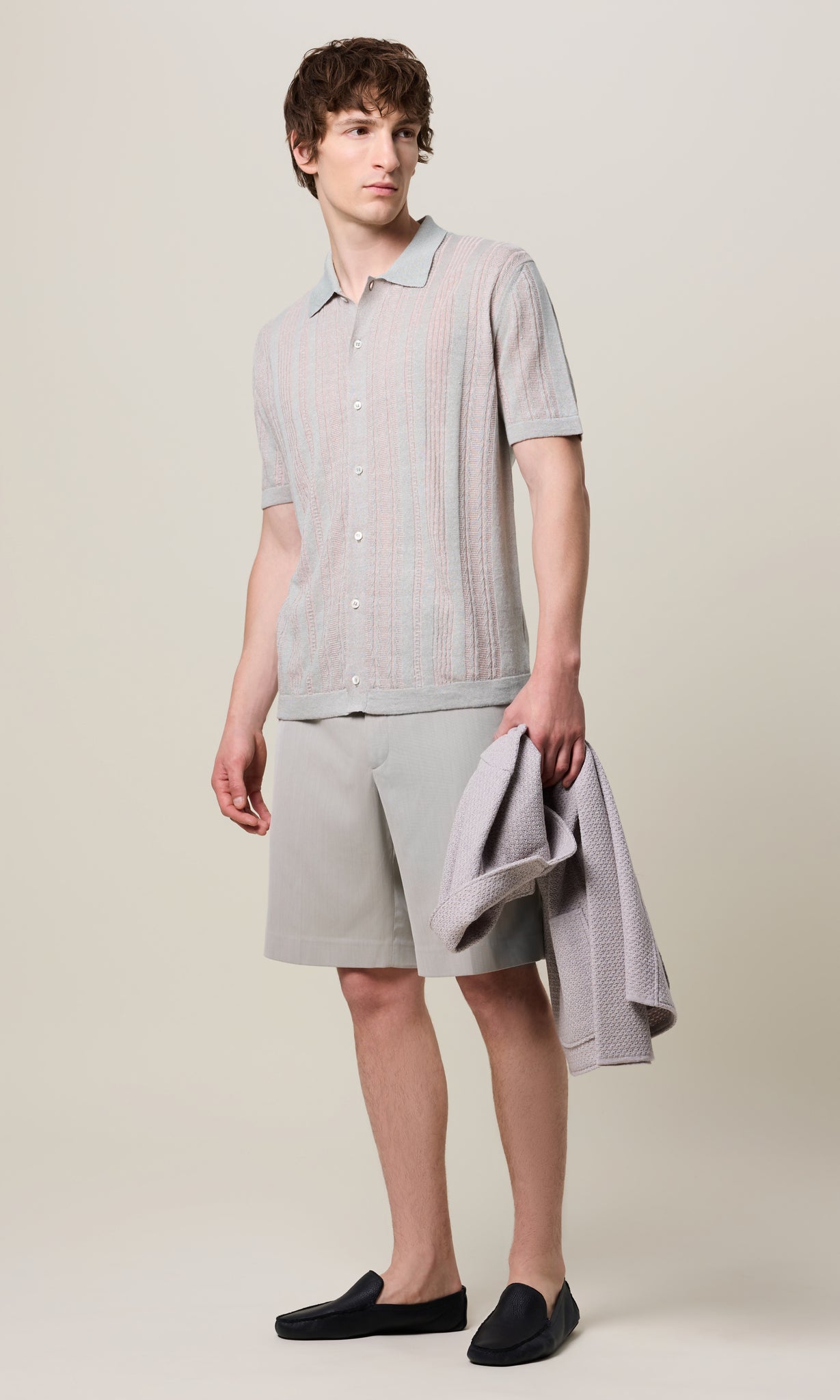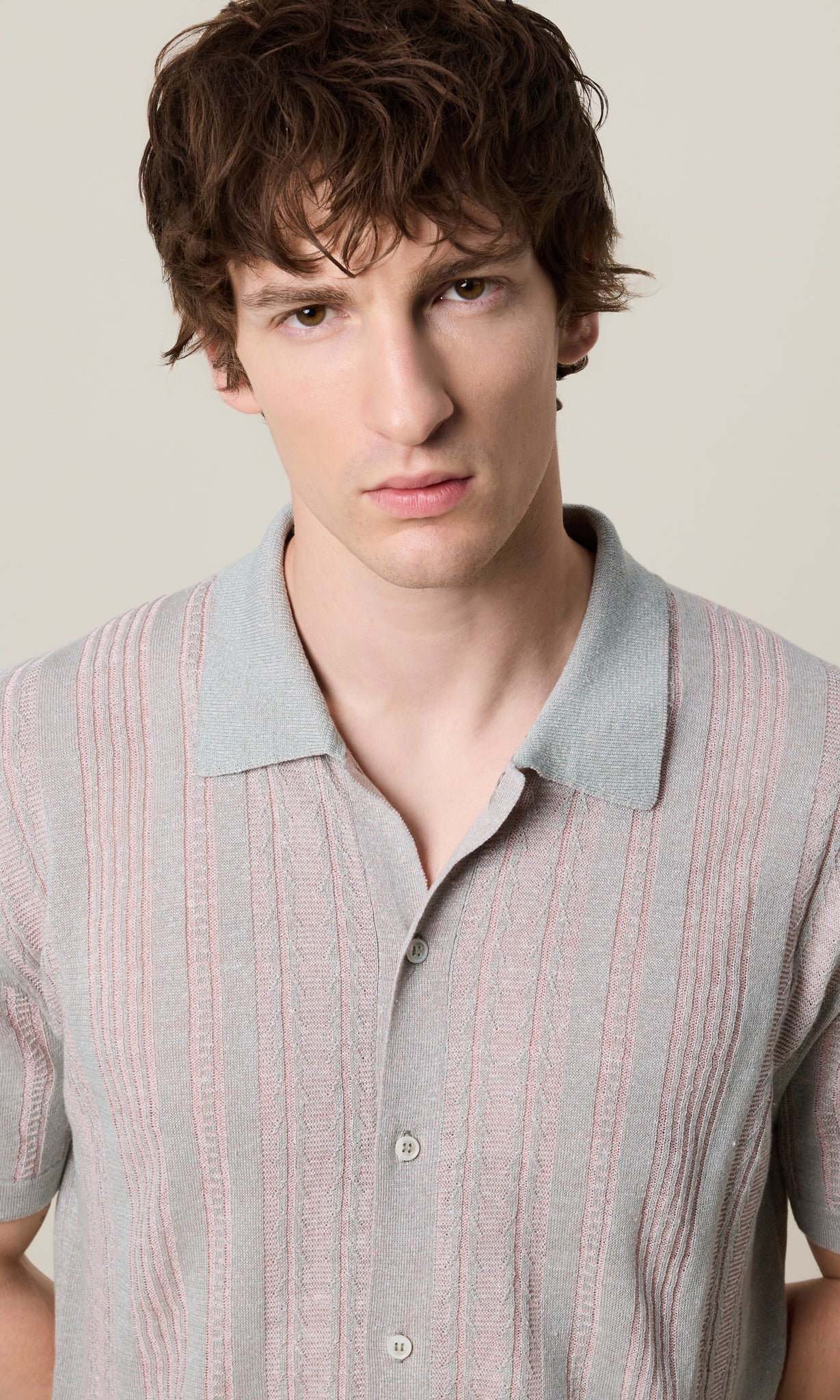 Knitted Stitch Polo Shirt in Linen and Cotton